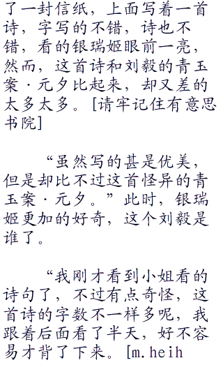 想到昨晚上元佳节,银瑞姬不禁的更加痴迷了,到底是什么样的人能够写出如此优美的诗句,虽然诗体头一回见到,但是这