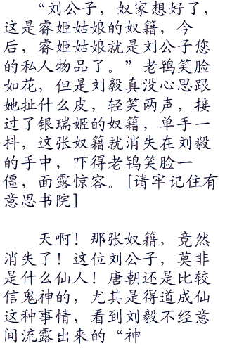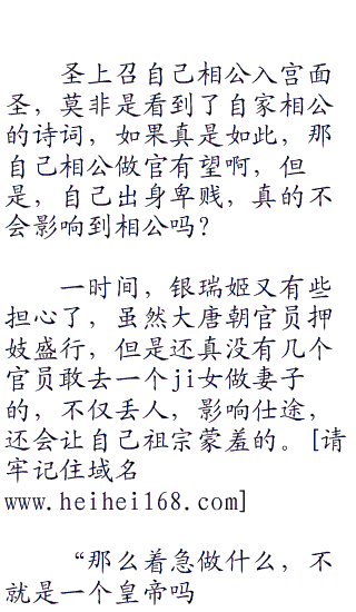 将手里的白银放回了钱箱之中,老鸨耸了耸自己老大的酥峰,别说,唐朝的仕女服还真是狗养眼的,就是这老鸨的容貌,实在是不怎么样。“刘公子啊,这睿姬刚刚在百花选艳上拔得头筹,满朝贵族无不想一亲芳泽,公子你就这样将人带走,贱妾我无法向那些人交代啊。”