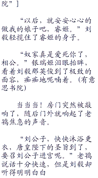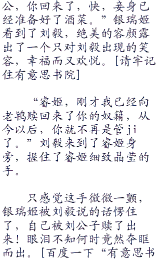 三十万两白银!天啊,这么多钱,就是把整个燕子楼买下来都够了,没想到睿姬的这首位恩客,竟然还是个如此有财的贵公子啊,这样一来,睿姬以后的日子,恐怕是不会苦了。