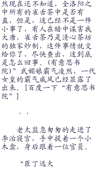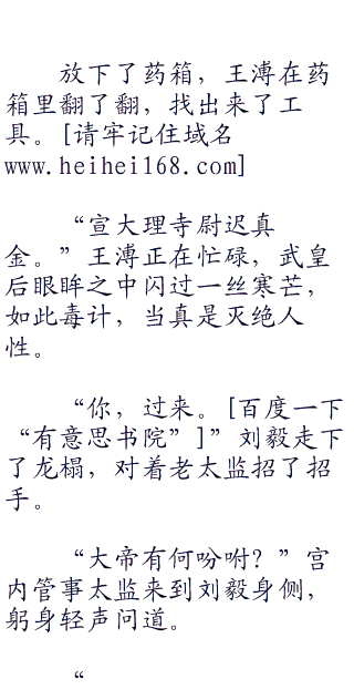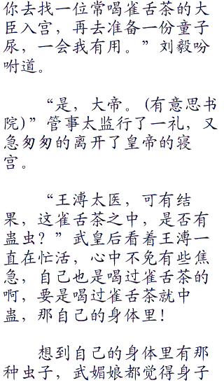 “臣等告退。”其余的太医都离开了,大殿之中只剩下了李治和武媚娘还有刘毅这个装逼的神武大帝与太医王溥。