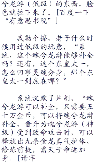 叮咚!恭喜宿主获得黄石天书残卷,黄石天书收录轩辕黄帝修仙法卷,如今宿主获得黄石天书残卷,获得魂兮龙游修炼之法。