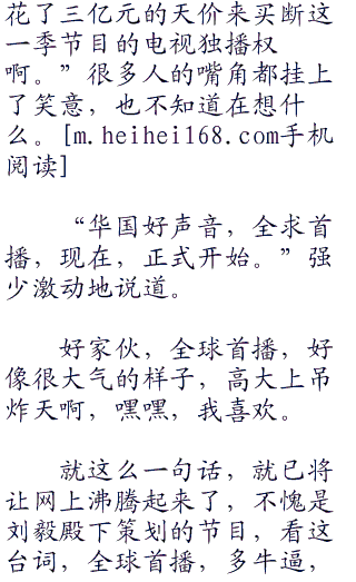 “本届好声音学员中最受导师喜爱的得意门生将有机会踏上唐朝娱乐集团赞助的音乐梦想之旅,同时,我们也将欢迎您参与《华国好声音》的短信互动,编辑短信a”