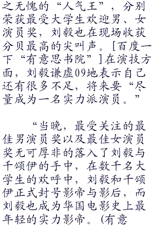 “在大学生电影节上,刘毅、千颂伊成为当
