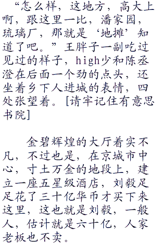 “行了,咱们进去吧。”看了看新月饭店的大门,吴邪整了整自己的衬衫,看了看身旁的high少和胖子。