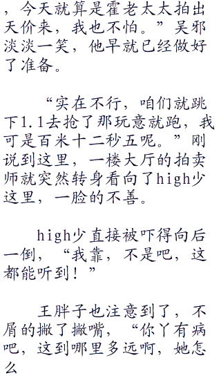 “很久没有看到这个场面了吧,你不相信,有人居然还敢做这个位置?哈哈,自从十几年前老昌盛之后,还没有人敢坐这个位置,不过,今天拍卖的东西可算是百年一遇,出现几个不要命的,也算是应应景了,还不快给吴家小太爷送上花名册,伺候好了啊,给你长长眼。”霍家老太冷笑着说道。