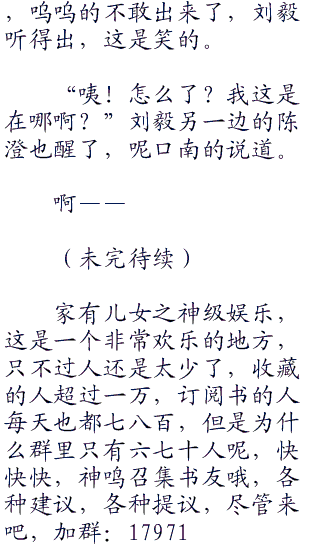 “呜呜,不要动,好热啊。”陈澄吧唧吧唧嘴呜呜道,嫩白的小手拨了拔自己的衣领,漏出来了一抹白皙,我擦!不是要脱衣服吧!刘毅心里微微一惊,伴随着一丝丝的燥热。