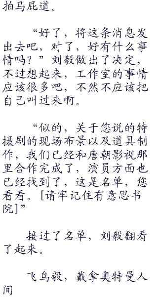 看完《爸爸到哪了》之后,刘毅又和夏雪折腾到了很晚才睡,第二天,刘毅心情愉快的来到了自己的工作室。