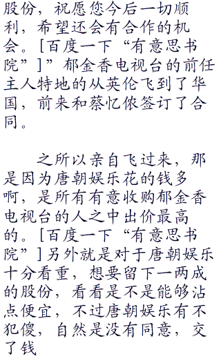 “蔡女士,郁金香电视台是一家非常优秀的私人电视台,您已经购买了这家电视台的全部