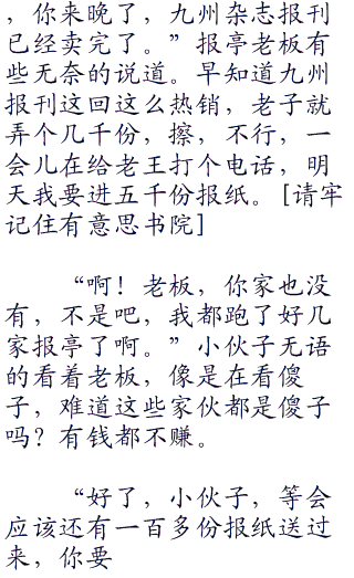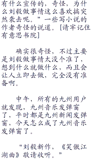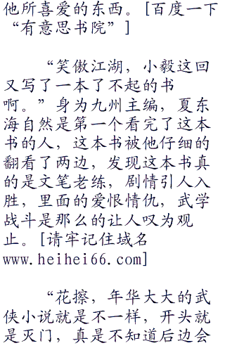 “我擦,这本新书竟然是武侠小说!”挤了半天终于买到了九州报刊的人迫不及待的翻开了报纸,发现报纸小说专栏那里写着《笑傲江湖》四个大字。