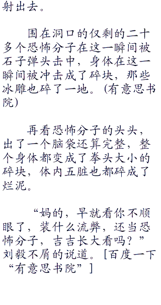 “开火!”领头的大光头惊恐的喊道,崇尚武力的他认为,没有什么东西是能够抵挡住子弹的攻击的,所以,在他的心中充满了惊恐的时刻,他选择了开火。