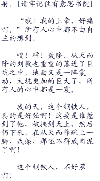 “哦!我的天,快看啊!怪物掉下来了!哈哈!哦!这样摔下来,一定会很痛吧!”新闻记者刚说完,就听到轰隆一声巨响,柏油马路直接被砸出来了一个巨坑,街道碎裂,地下管道也都崩坏了,水柱四