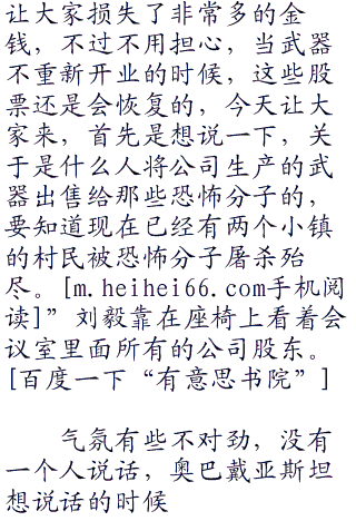 下午三点,斯塔克公司的会议室中,所有股东都到齐了,奥巴戴亚斯坦坐在刘毅下首,不过神情却有些奇怪!