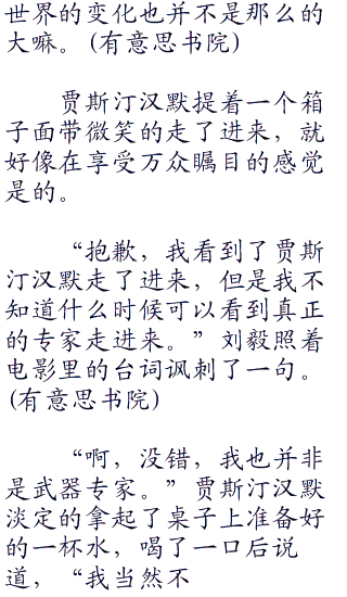 刘毅扭头一看,暗骂一声傻逼,这个人跟钢铁侠二里面的那个贾斯汀·汉默又是一个人,看来这个