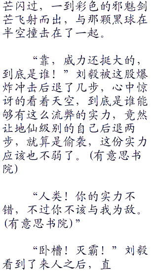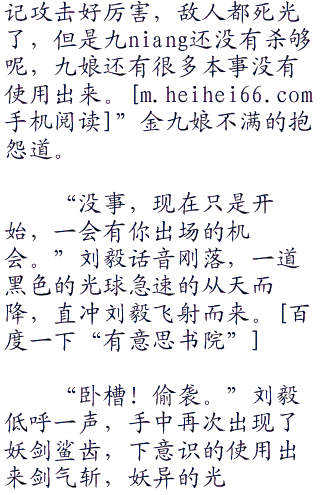 “怎么样,这一击的威力不小吧。”刘毅得意的对金九娘说道。金九娘点了点头,用心神对刘毅说道。