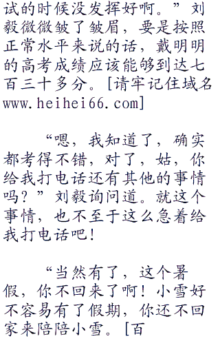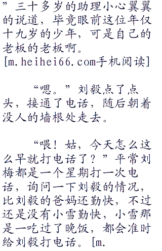 刚出房间,刘毅的助理就跑了过来,手里拿着刘毅的手机,手机还在响铃,还没告诉你,对不起……
