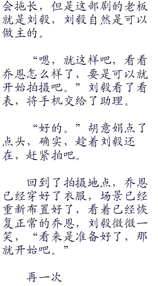 “好了,乔恩,休息一下吧,一会继续拍摄,今天一定要把这场戏拍过了。”刘毅轻笑了一声,拍了拍乔恩的大tui说道。