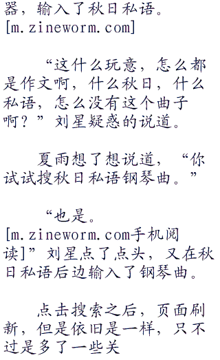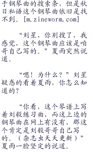 “秋日私语,挺好听的啊,我上网搜搜是谁创作的。”刘星拿出了手机打开了浏览