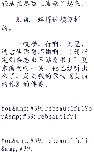 “我赛,小雨,你刚才弹得曲子叫什么?”刘星兴奋地坐到了夏雨身边问道。
