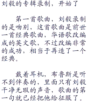 “你好,刘毅先生,您的到来,真是让我们云顶天宫蓬荜生辉啊,我是这家录音棚的老板,布鲁斯。”录音棚的老板是个大鼻子,很明显是个华国通,说华语说得很溜。