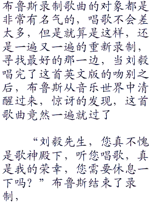 实在是太美妙了。这种感觉,是布鲁斯成为录音师以来,听到最美妙的声音,往常,给别人录音都是一遍又一遍的纠正,当然,
