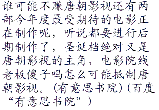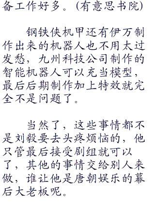 终于结束了,刘毅微微一笑,总算是拍完了这部电影了,为什么这么说,因为刘毅已经迫不及待的想要指导拍摄自己的电影了。