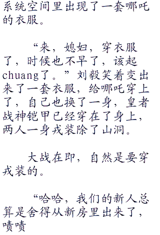 “知足吧,今天你不嫁给我,就得嫁给外边的七大圣的其中一个,嘿嘿,怎么说我也是玉树临风的帅哥美男,怎么,你想嫁给牛魔王,还是蛟魔王?或者是猴子,大鹏鸟。狮子?”刘毅一边说,一边用善解人衣手继续给哪吒脱衣服。