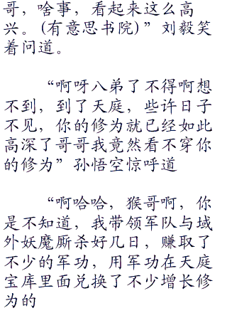 “八弟八弟俺老孙来看你了”这日,刘毅刚从域外驻地回家没多久,连日来的厮杀,刘毅掌管的十万天兵已经快富得流油了,各个天兵的修为也都增长了一层,军功更是满满的,而刘毅最大的收获就是修为的提升。