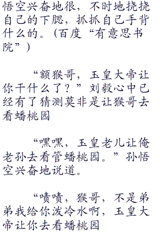“速速叫孙悟空去掌管蟠桃园,免得在惹出事端来。”玉皇大帝一个旨意就这么随便下达了