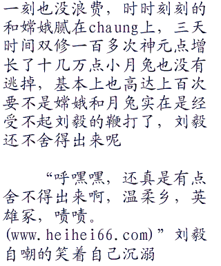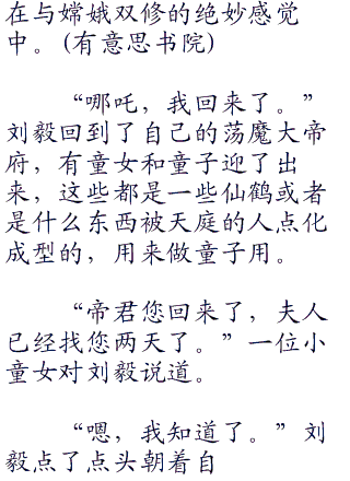玉皇大帝没做到的事情,我做到了,猪八戒想做的事情,我做了,嘿嘿,宝莲灯里,杨戬也暗恋嫦娥,结果现在嫦娥躺在我的怀里,这种成就感,爽啊
