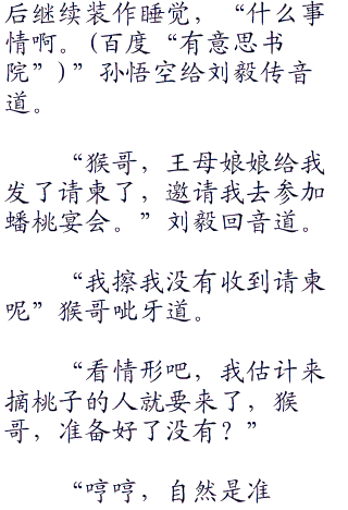 “猴哥,猴哥”刘毅来到了正在睡觉的孙悟空旁边,变成了一个虫子飞到了孙悟空的耳边叫道。