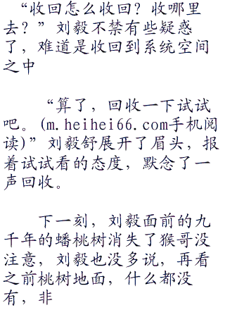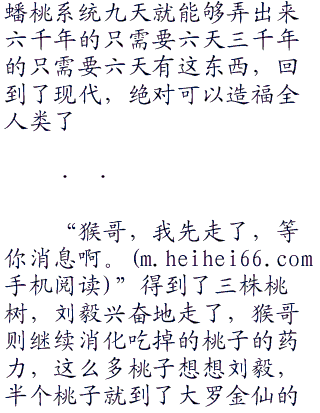 一路上,刘毅将七十二变发挥到了极致,一会变成苍蝇,一会变成仙鹤,一会又变成石头,总之避过了所有人的耳目,悄悄地进入了蟠桃园。