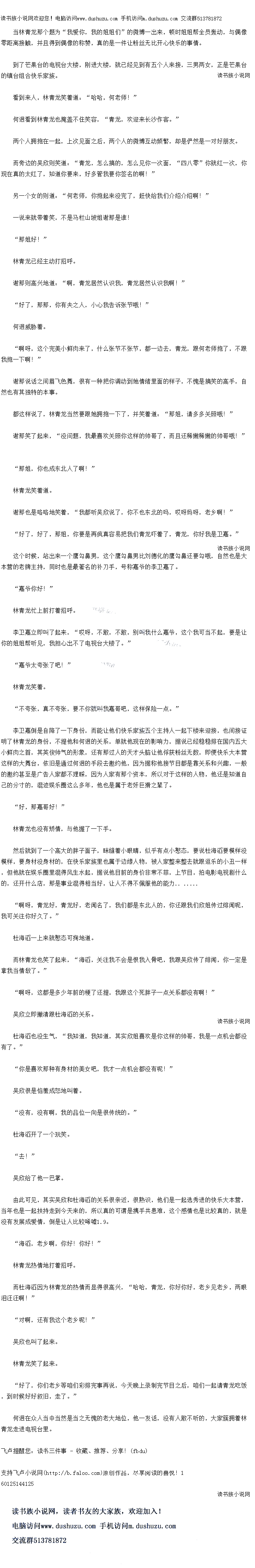 啊呀,青龙好,青龙好,老闻名了,我们都是东北人的,你还跟我们欣姐传过闻呢,我可关注你好久了。