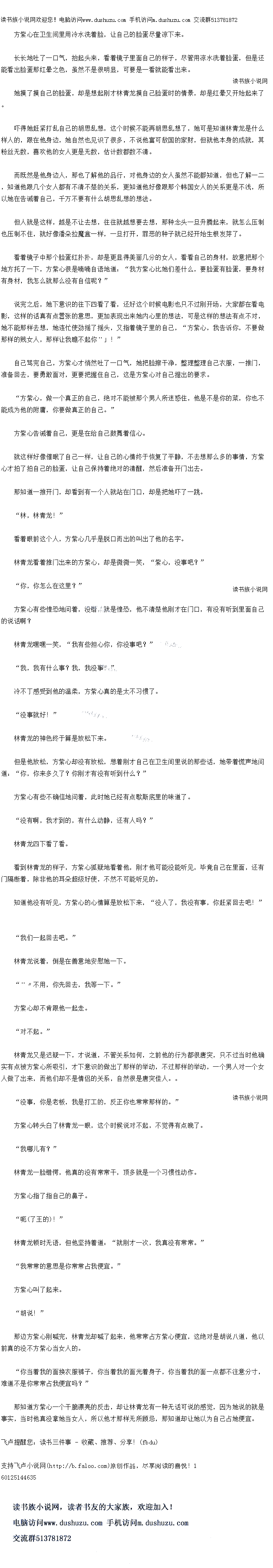 但是他放松,方紫心却没有放松,想着刚才自己在卫生间里说的那些话,她带着慌声地问