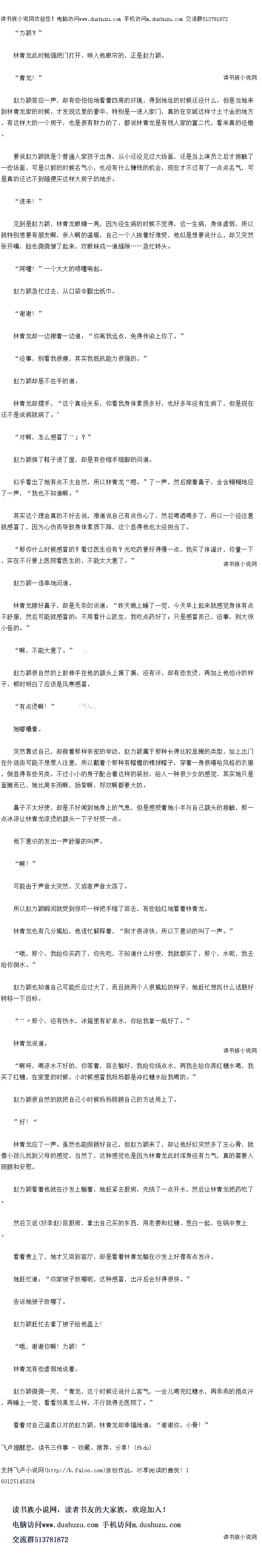 见到是赵力颖,林青龙眼晴一亮,因为没生病的时候不觉得,这一生病,身体虚弱,所以