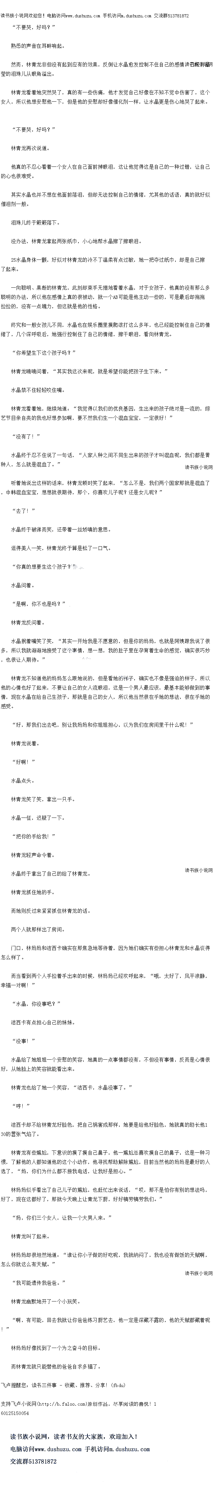 情,现在水晶在给目已生孩子,那就是目已的女人,所以他当然很在平她的想法,很在平她的