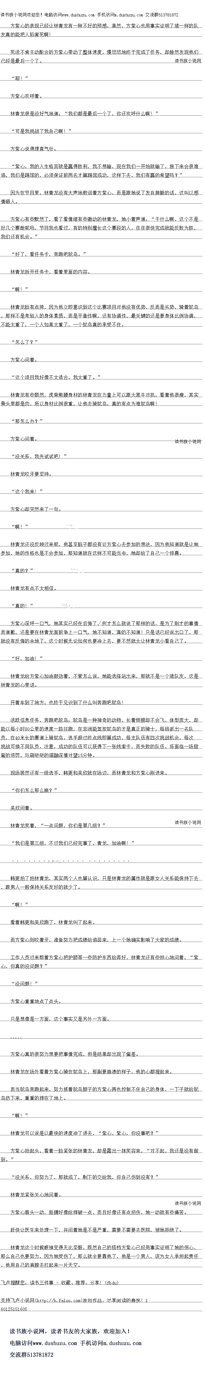 而当鸵鸟奔跑起来,努力抓看驼乌脖子的万紫心再也控制不任自己的身体,一下子就给鸵