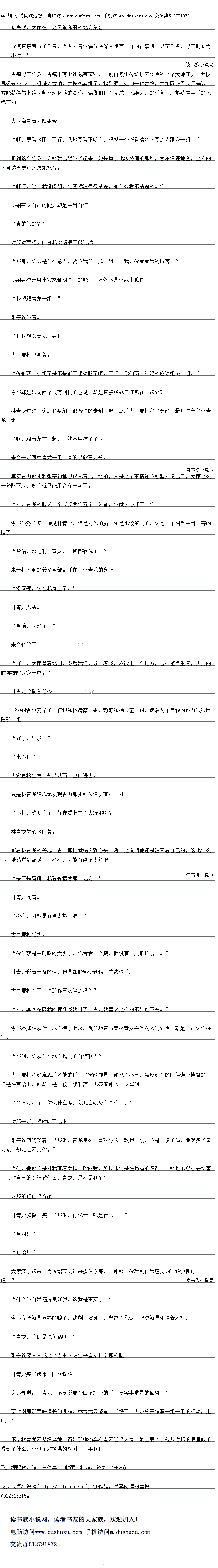 禺像分成六个小组进入古镇,并按线索提示,找到藏宝处的一件古物,并拍照交予大师确认