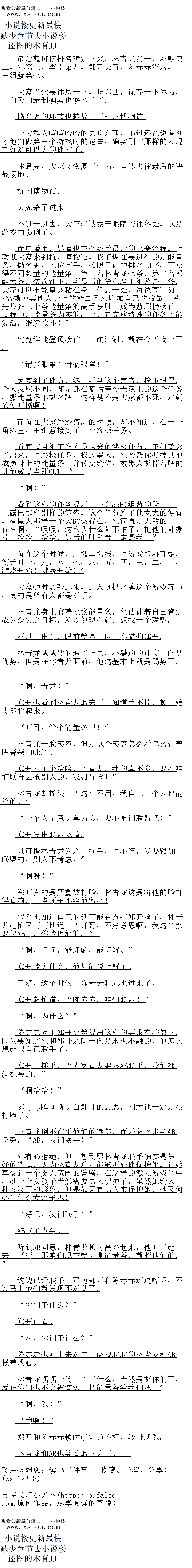就在这个时候,广播里播报,“游戏即将开始,倒计时
