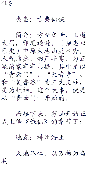 苏灿手里拿着《诛仙》的U盘,有些迫不及待的打开电脑,将U盘连接上去。这本仙侠巨著马上就要在这个世界问世了,苏灿心里也有点小激动呢。