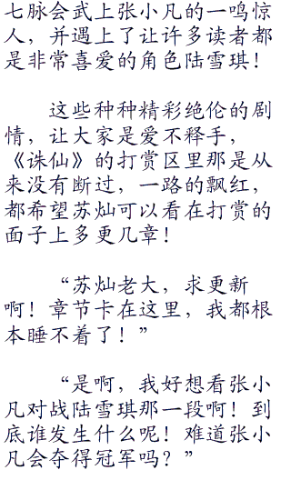 《诛仙》在发布一天半不到的情况下,已经吸引了大批大批的读者,其非常具有中国古典风格的小说场景跟生动无比的人物刻画,使得大家只看了前几章就完全被吸引住了。