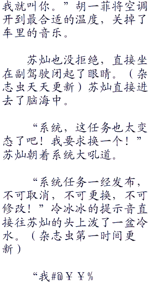 “亲爱的,怎么样?难不难受?”胡一菲在车里担忧的询问着苏灿。