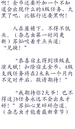“顶级表演天赋:随机触发一项A级支线任务、扣除苏灿金币。是否兑换?”