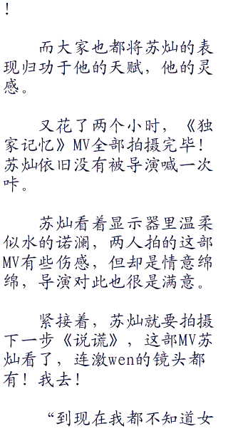 《独家记忆》跟《说谎》这两首歌曲的MV是比较伤感的,《独家记忆》主要是拍摄男主面对女主质问的场景,导演只安排了两人拥抱的戏份,并没有其他太多亲密的戏份。