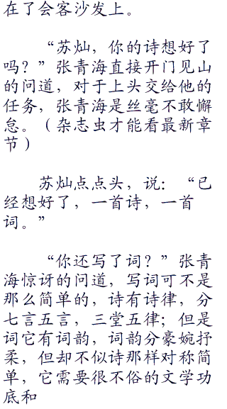 这次为了给伟人写诗,苏灿还是蛮重视的,张青海也是在昨天邀请了苏灿来北京,希望能与其亲自讨论一些细节和内容。