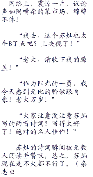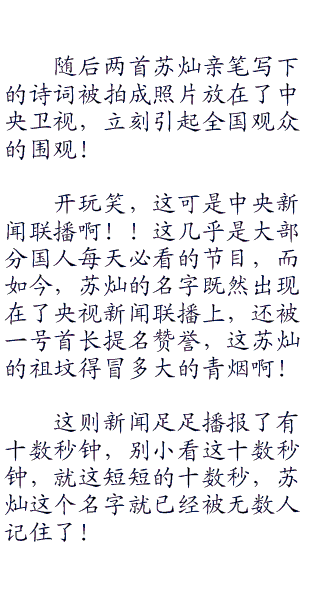 狼毫笔再次被苏灿提起,一笔一划地摆动着,形成了一首完美的佳作: