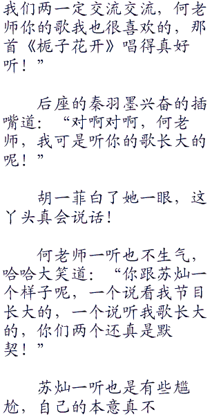 “我好兴奋啊!马上就要见到何老师了!”陈美嘉一脸期待的说道。