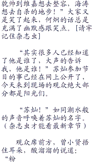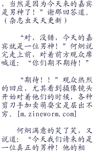 “难道你们不觉得我今天离我们节目的主题很接近吗?”何炯依然不死心的问道。