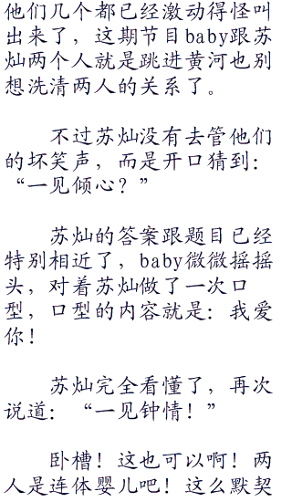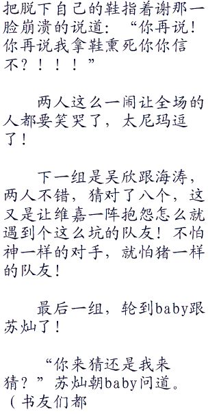 谢那一听不干了,怎么可能是我的问题!朝着何炯就说道:“炯炯你怎么可以这么说呢!怎么会是我的问题嘛!”