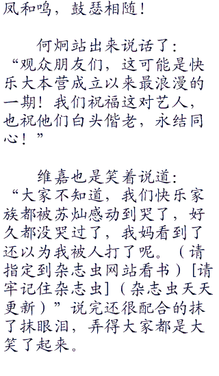 台下很多女人都听哭了,包括谢那跟吴欣,两人都是摸着眼泪,感动的眼泪,得夫如此,夫复何求!