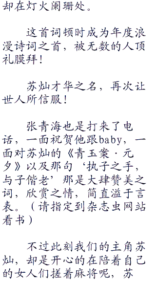 几个女人凑在苏灿的房间里聊了很久才各自散去,胡一菲她们娇笑着留下了脸色通红的baby都回到了自己房间去了。